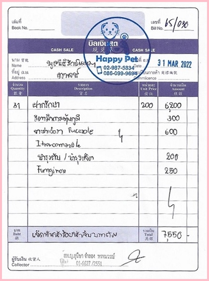 - สถานพยาบาลที่เข้ารักษา โรงพยาบาลสัตว์ บ้านสัตว์อารมณ์ดี ปทุมธานี